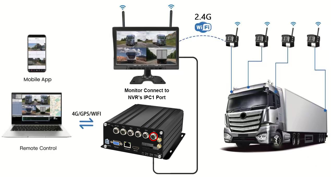 Täiendavad 3-kanalilised juhtmega IP-kaamera sisendidCarleader 10,1-tolline 7CH Wireless HDD mobiilne NVR-süsteem, tipptasemel mobiilne juhtmevaba NVR-süsteem, mis on loodud sõidukipargi haldamiseks. Süsteem kasutab 4 tk traadita IP-kaamerat, mis on seotud 10,1-tollise traadita releemonitoriga 2,4 GHz signaali kaudu, seejärel ühendage releemonitor ja NVR IPC-port 6-PIN-i lennuliidese kaudu, samuti toetatakse täiendavaid 3-kanalilisi juhtmega IP-kaamera sisendeid.