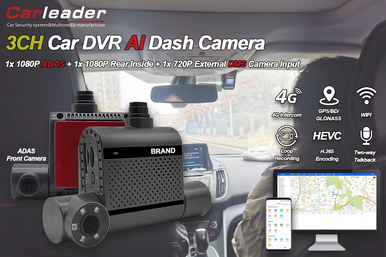1080P veekindel tahavaatekaamera koos automaatse katikugaCarleader 3CH Dash kaameral on 3 kaamera sisendit, auto esi-, sisemusse ja tagaosa saate salvestada. 3-kanalid AI ADAS DMS CAR DRASH CAM, mis on varustatud 4G, GPS-i ja 1080P videosalvestusega. AI Dash CAM -i esivaade 1080p ADAS (Advanced sõiduabisüsteem) tehnoloogiaga. 3 kanalit AI Dash CAM sisseehitatud 4G, WiFi, GPS, ADAS ja DSM. AI armatuurlaua kaamera 130 ° laiusega vaatenurgaga, et näha selget pilti ja muuta teie sõit turvalisemaks!