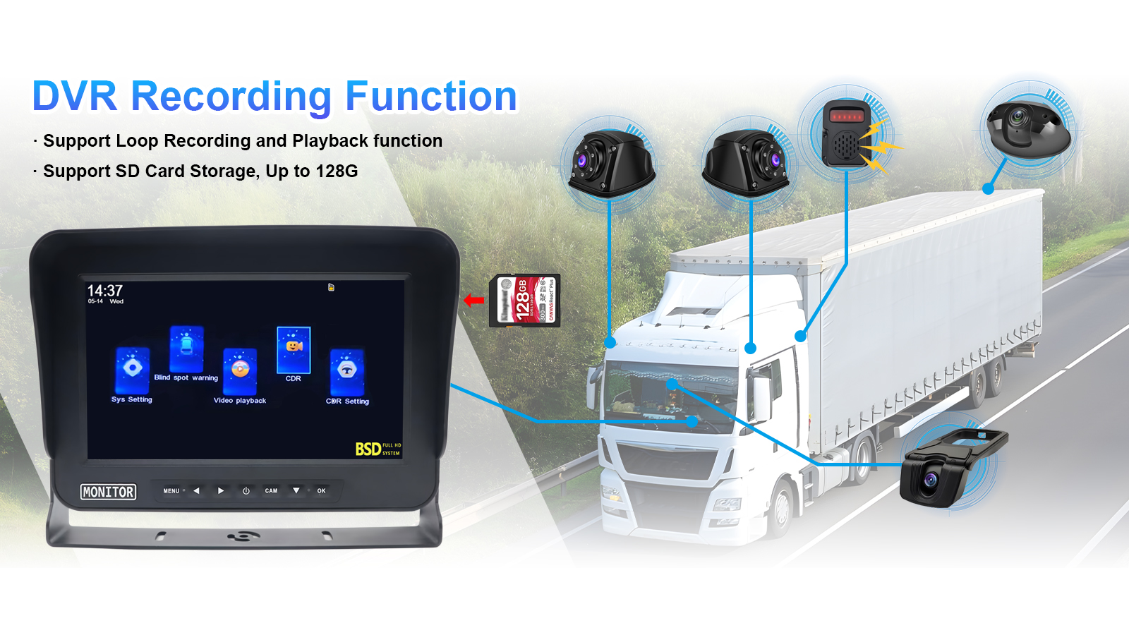 Carleader 10,1 -tolline sõiduk BSD pimeala tuvastamise jälgimissüsteem, mõeldud veoautodele, bussidele, ekspressautodele ja spetsiaalsetele sõidukitele. Varustatud arenenud AI-piltide algoritmide ja suure jõudlusega kiibiga tuvastab see süsteem intelligentselt pimedas kohas jalakäijaid, jalgrattureid, mootorrattaid, kaubikuid ja looma, pakkudes kokkupõrgete vältimiseks õigeaegseid hoiatusi.