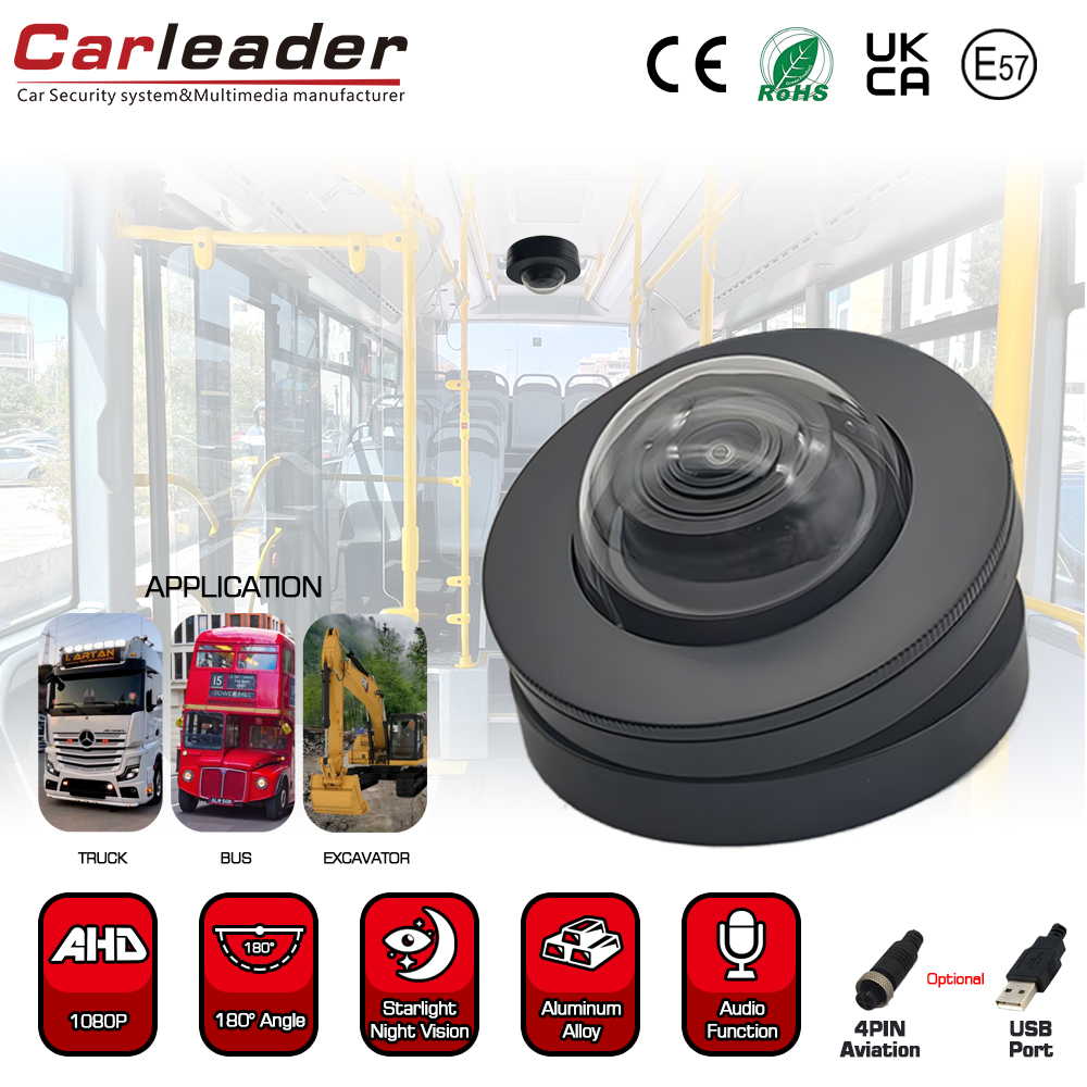 Carleader180 kraadi lainurk HD 1080p kuppel sõiduki kaameraTöötage suurepäraselt logistilise transpordi (raskeveokite, poolhaagi, kaubiku), ühistranspordi (buss, koolibuss, treener jne), RV, ehitussõiduk jne.