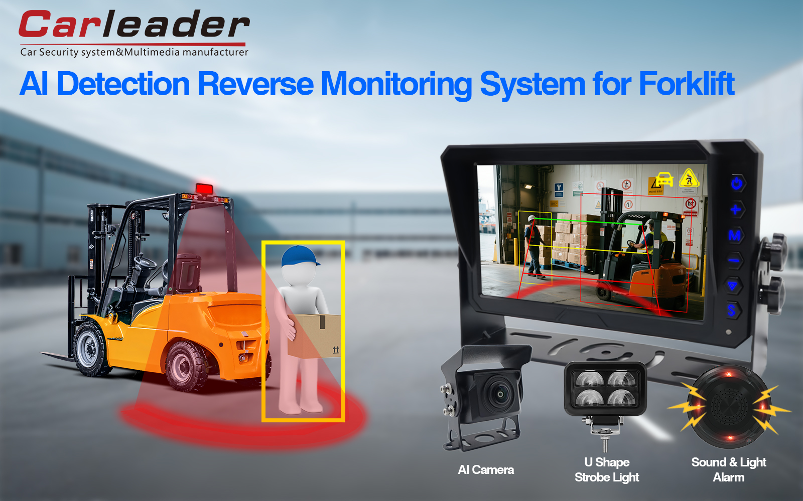 1.Karleader AI tuvastamise seiresüsteem U-kujulise hoiatusvalgusega kahvli tõstuki jaoks, mis on mõeldud spetsiaalselt 24 V sõidukite jaoks, lai pinge DC12-32V sisend.