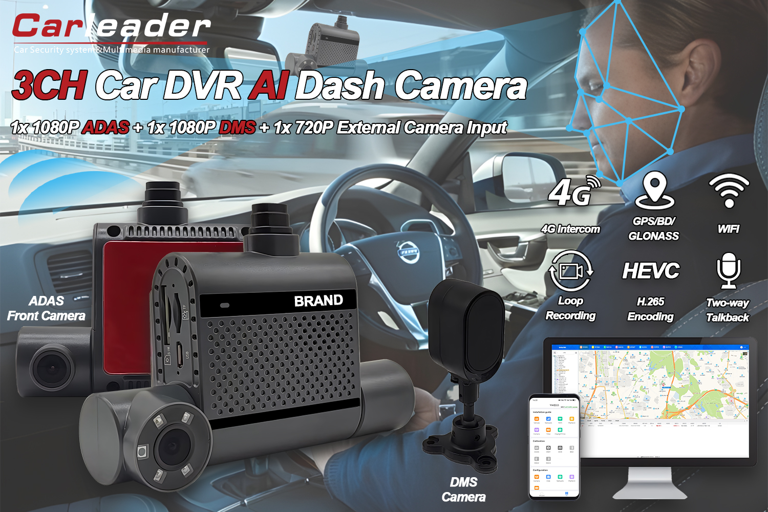 Carleader3 kanali AI Dash Cam koos ADA -de ja DSM -igaIdeaalne: transpordilaevastikud, sõiduautod, logistika jne