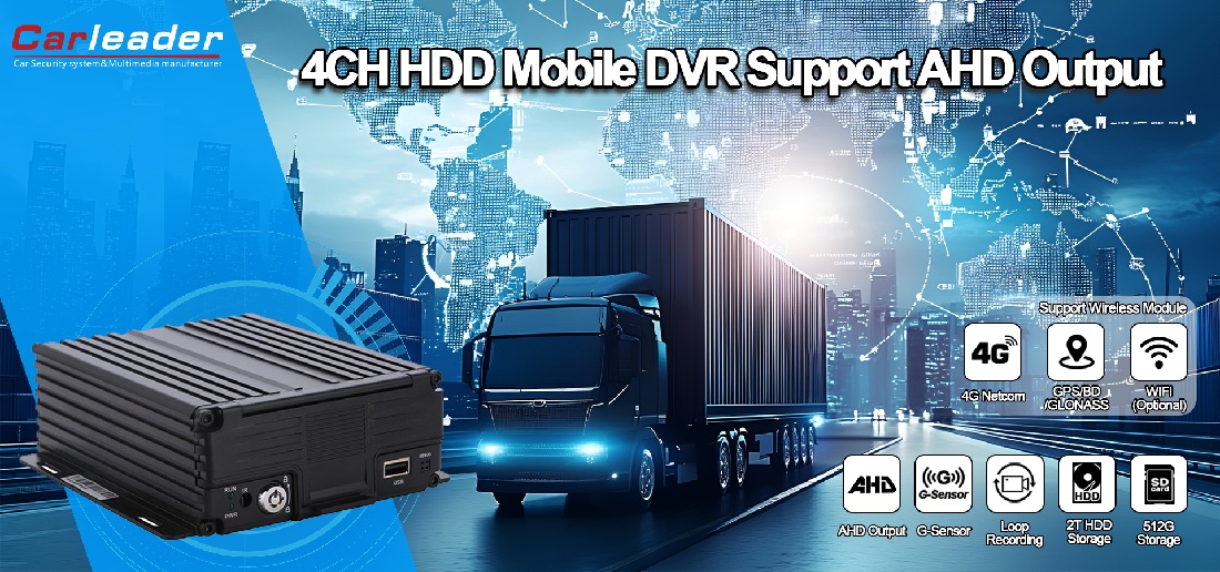 Karleader4CH 1080P HDD mobiilne DVR toetab AHD väljunditon suure jõudlusega 4-kanaliline mobiilne digitaalne videosalvesti (MDVR), mis toetab AHD-signaali väljundit. See on loodud usaldusväärseks ja täiustatud sõidukite jälgimiseks ja andmete haldamiseks. See on loodud täitma autopargi haldamise, transpordi turvalisuse ja mobiilsete salvestusrakenduste nõudeid ning ühendab tugeva riistvara intelligentsete tarkvarafunktsioonidega.