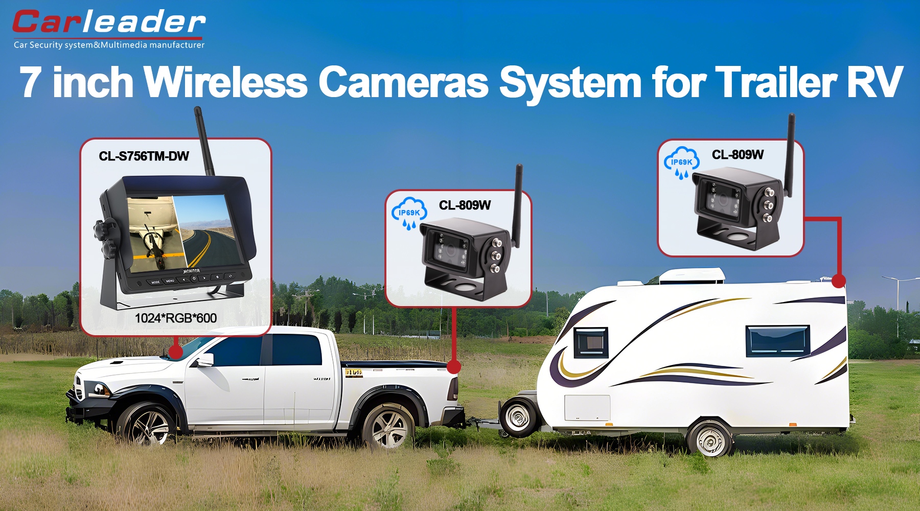 Karleader7-tolline 2,4G digitaalne juhtmevaba 2-kanaliline jagatud ekraaniga kaamerasüsteem, suure jõudlusega traadita seiresüsteem, mis toetab 2 slipkuva vaadet, mis on ühendatud 2 tk juhtmevaba kaameraga. 7-tolline digitaalne paneel, 16:9 pildisuhe, 1024 x 600 (RGB) eraldusvõime tagavad juhile selge sõidukogemuse.