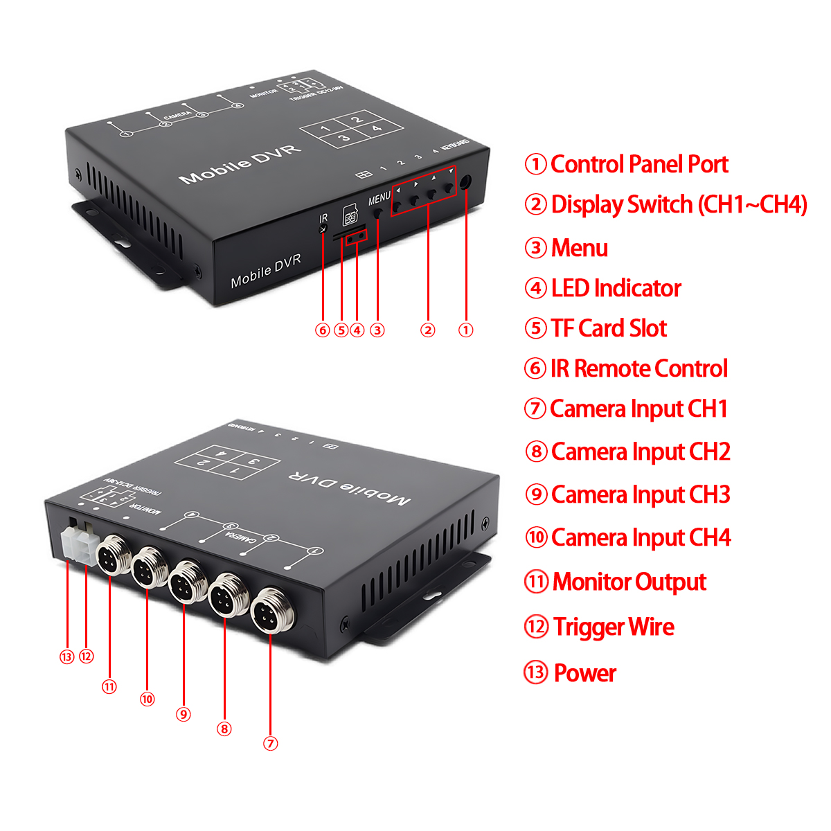 Carleader Quad Video Splitter Box ühendab 4CH videojagamiskasti mugavuse DVR-i salvestusfunktsiooni turvalisusega. Selle kõikehõlmav funktsioonide komplekt, sealhulgas eraldi pildiseade, paindlikud päästikurežiimid (päästikujuhe ja kaugjuhtimispult), ekraani servade reguleerimine, lai pingesisend ja tugev kaitse – pakub usaldusväärset ja kvaliteetset seirelahendust, mis on kohandatud nõudliku mobiilse keskkonna jaoks. Tagage täielik olukorrateadlikkus ja turvalised videotõendid Carleader 1080P AHD Quad Split Display Videoprotsessori toega videosalvestusega.