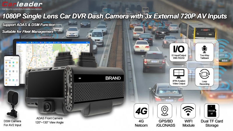 Karleader4-kanaliline tehisintellektiga töötav ADAS+DSM Dash-kaamera toetab videoväljunditon suure jõudlusega ühe objektiiviga DVR-kaamera, mis on loodud kaasaegsete sõidukite ohutuse ja jälgimise vajaduste jaoks. Täiustatud juhiabisüsteemide (ADAS) ja juhi oleku jälgimisega (DSM) varustatud seade pakub igakülgset turvalisust ja reaalajas hoiatusi, et suurendada sõiduohutust.
